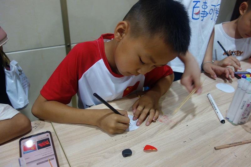 参加活动的学生及观众在纸片上绘出自己对党和祖国最深切的祝福,在工作人员的帮助下制作完成一个个徽章。小小的徽章代表着对党和祖国的美好期盼,薪火百年,吾辈奋进,红色基因,代代传承。活动进行中