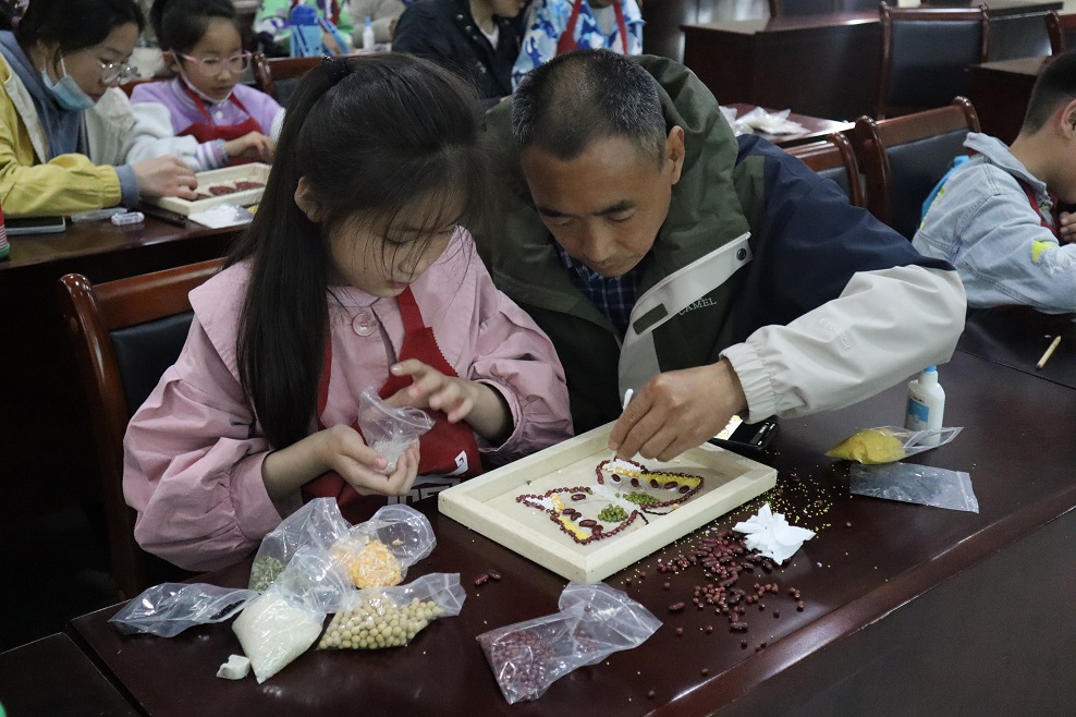 活动中,安阳博物馆社教老师带领同学们认识了二十四节气及二十四节气中谷雨节气的由来和习俗,并以诗词谚语的方式了解了谷雨的气候特点。在制作五谷画活动环节,孩子们和家长一起动手,将大米、黑豆、红豆、绿豆、小米等多种五谷杂粮用丰富的想象排列粘贴在一起,创作出一幅幅赏心悦目的五谷图画。