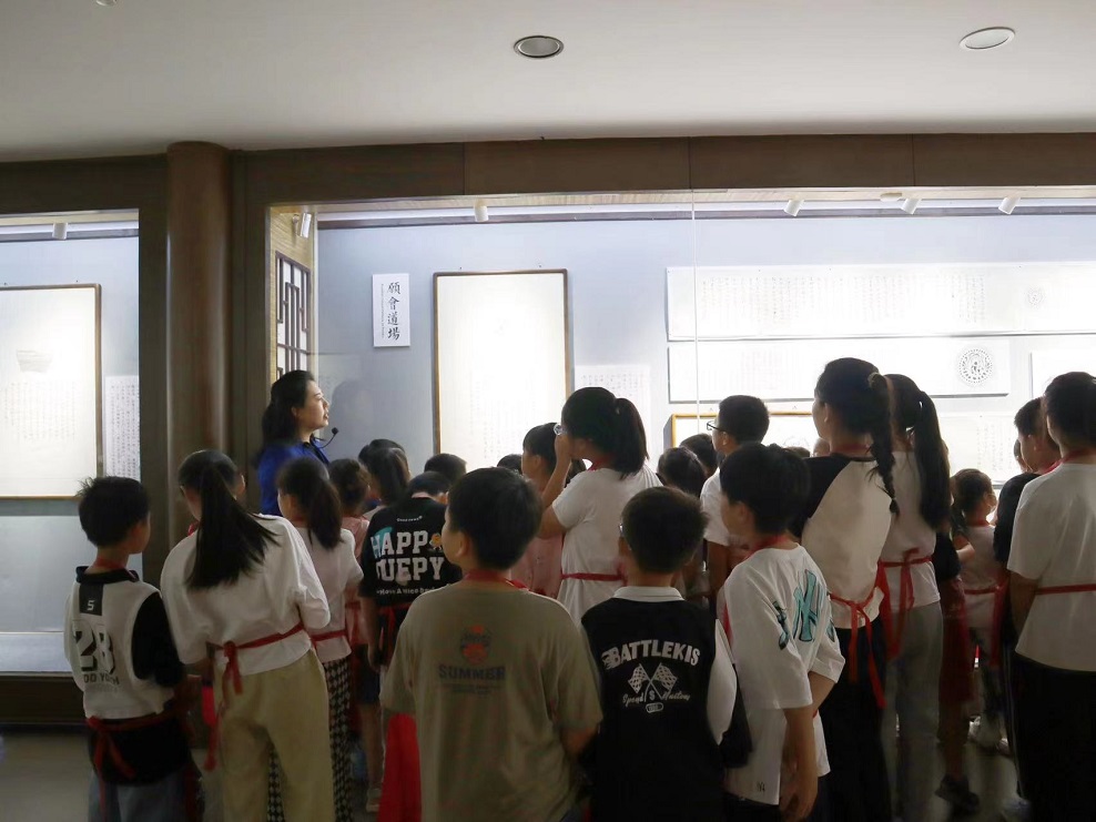 首先,安阳博物馆社教老师带领同学们参观了《博物馆里的文物明星——2019—2023年博物馆日馆藏精品文物推介集萃展》、《陶文补史 笔墨传薪——焦智勤殷墟邺城陶文题跋展》等展览,让孩子们了解了甲骨文的发现和造字方法,学习汉字演变文化。活动最后,学生们动手制作丝网书签,将带有甲骨文字的丝网书签放置在空白书签上,用刮板将颜料均匀的涂染于丝网之上,一张张精致的甲骨文“大邑商”和“兽面纹”书签就制作完成了,体验古人的文明智慧。本次活动让孩子们了解中国传统文化,蕴传承之光,加深孩子们对家乡历史、文化的认识。