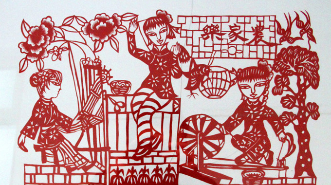剪纸是最古老的汉族民间艺术之一,作为一种镂空艺术,其在视觉上给人以透空的感觉和艺术享受。剪纸用剪刀将纸剪成各种各样的图案,如窗花、门笺、墙花、顶棚花、灯花等。每逢过节或新婚喜庆,人们便将美丽鲜艳的剪纸贴在家中窗户、墙壁、门和灯笼上,节日的气氛也因此被烘托得更加热烈。在农村,剪纸通常是由妇女、姑娘们来做。在过去,剪纸几乎可以说是每个女孩所必须掌握的手工艺术,并且还被人们来品评新娘的一个标准。在中国南北方的剪纸艺术,通过一把剪刀,一张纸,就可以表达生活中的各种喜怒哀乐。